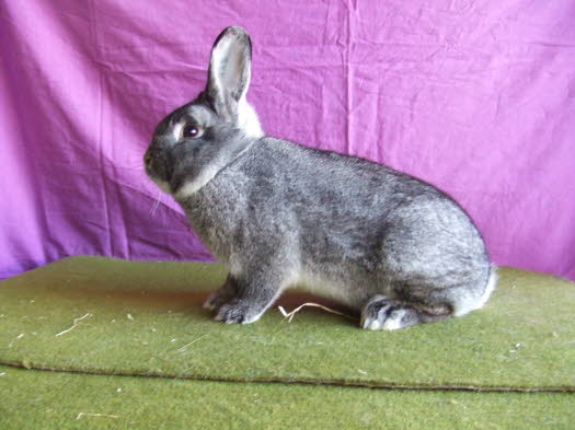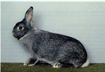 | Середній по масі, скоріше невеликий, кролик 2,5-3 кг. Тулуб компактний округле. Вуха прямі стоячі. Кролиці мають складку жиру під підборіддям. Колір хутра блакитно-сірий. Підшерсток блакитний, середина перлова, перехідна в білий і закінчується чорним кольором (зустрічаються коричнюваті кролики). Низ кролика, облямівка навколо очей - світлі, окантовка верху вух чорна.