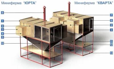 | Вован плохо ищеш. ЭКСПЛИКАЦИЯ. 1. Деревянный каркас 2. Сенник 3. Поилка 4. Комбикормушка 5. Большая сетка 6. Малая сетка 7. Крыша 8. Труба 9. Гнездовье 10. Металлический короб 11. Лицевая панель 12. Полка для инвентаря 13. Металлический каркас