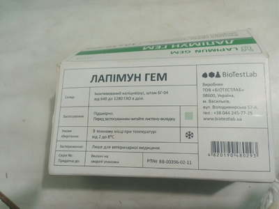 | Использовал лапимум гем-все впорядке,вот с мисоматозом у некоторых(3 крола)проявились крохотные миксы и быстро пропали. Подтвержу прислали хорошо упакованной в пенопластовом боксе и бутылка со льдом. Если волнуетесь заказывайте в вет-магазинах,когда температура воздуха способствует Я заказываю потому-что у нас цена в вет-аптеке цены 35 грн та и та,а за чешку вообще промолчу(