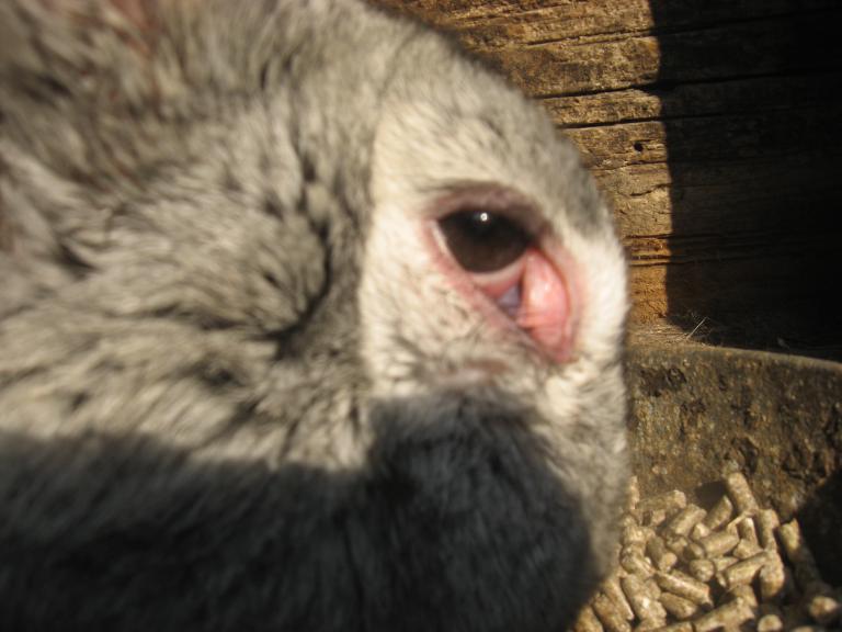 | Помогите, пожалуйста определить, что с нашей крольчихой Когда мы ее покупали сразу не обратили внимания, что на глазах такие как пленочки по бокам были, а дома, уже разглядев ее повнимательно, я подумала, может так и нужно ( до этого с детства живых кролей не видела). Носили ее к бывшему хозяину к кролю, он ничего подозрительного не заметил, хотя держит кроликов много лет, а мы тоже как -то забыли спросить... Сейчас у нее крольчата, и в последние дни у нее с глазами часто бывает такое, особенно, когда она наклоняется и кушает.